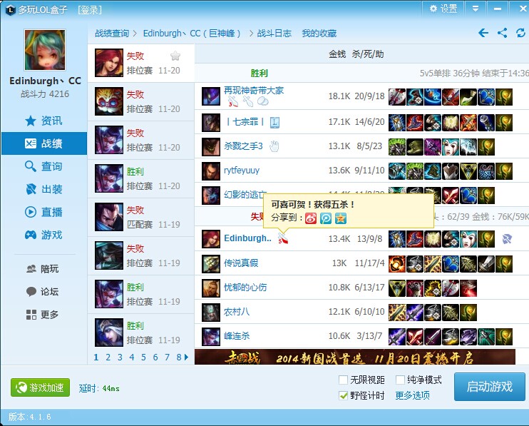 我在线等。拿了一个最帅的五杀也是蛮高兴的