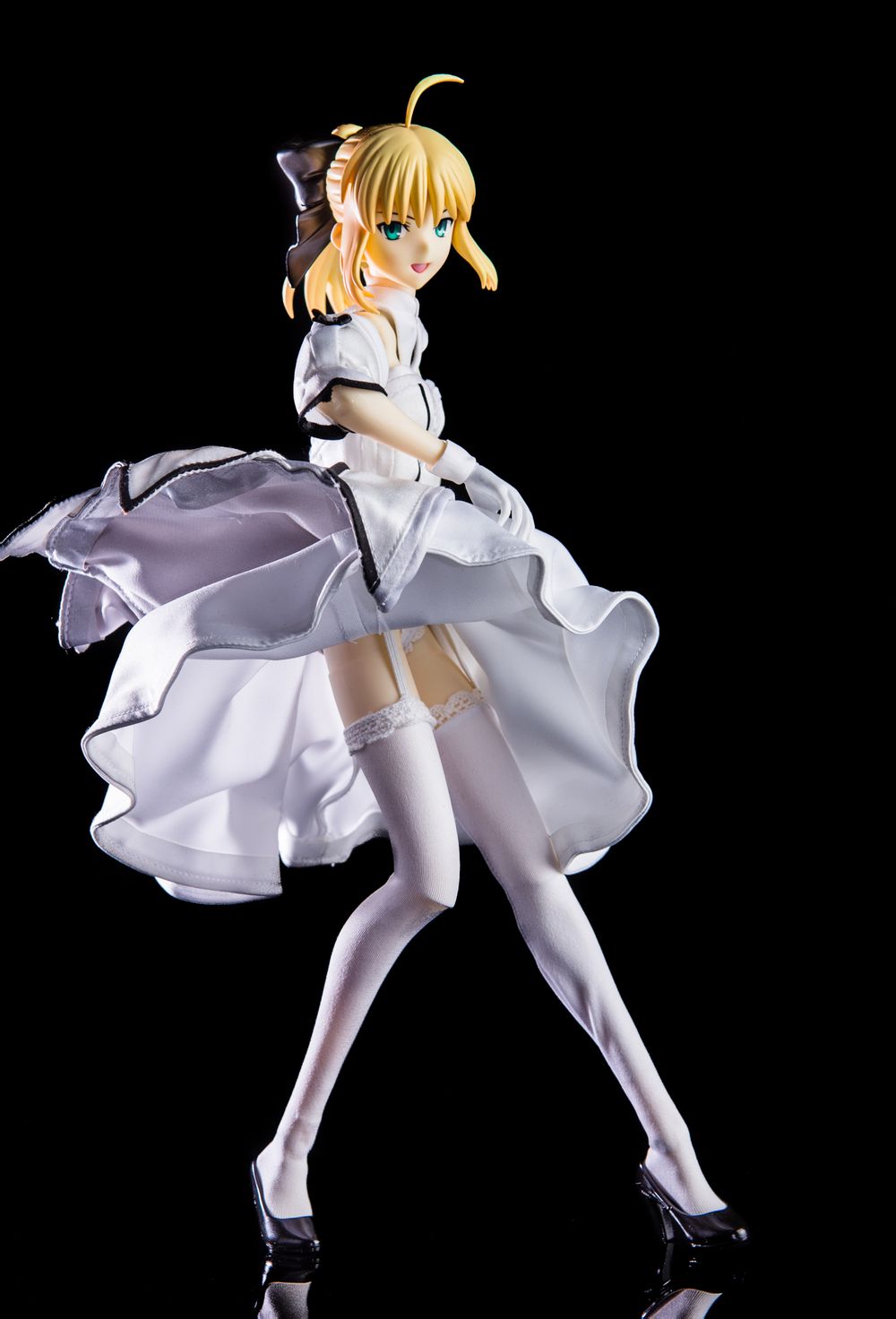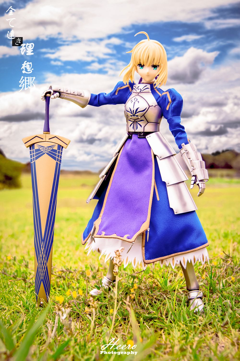 原图由于是大逆光,对于正面补光量需要还挺大。后期上全部用调色完成,由于一开始就没用支架所以不需要去了。也就没有任何添加减少元素的操作了。 整个色调按照FZ的风格,偏黑暗。由于FZ里的黑夜基本都是蓝光,所以后期加了一点点蓝,提升冷感。去掉大部分的颜色增加黑白对比,保留王本体象征性的金发与咖喱棒的金护手以突出本体。特意没有选用那把全金色的剑,以避免过分枪眼。
