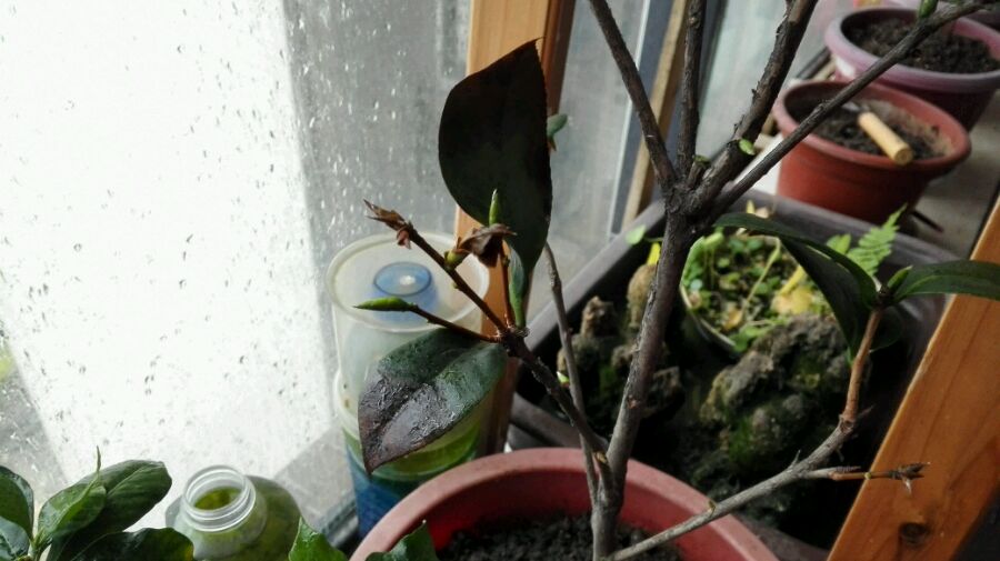 比如你这茶花可能是新上盆的,放置茶花的地方比较闷热不透气,盆土比较肥沃,湿度大,导致茶花烂根,出现叶片干枯,掉落。