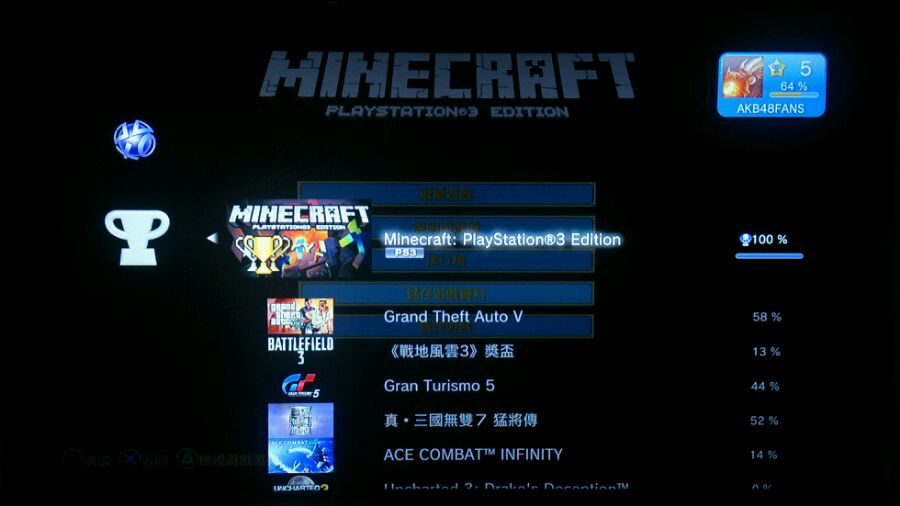今天刚刚白金,想找人联机玩,找乐趣,PSN:AKB48FANS,记得注明玩MC的