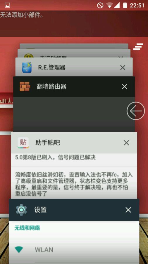 流畅度依旧丝滑如初,设置输入法也不再fc,加入了高级重启和文件管理器,状态栏变色支持更多程序,最重要的是,信号终于解决啦,再也不怕重启没信号了