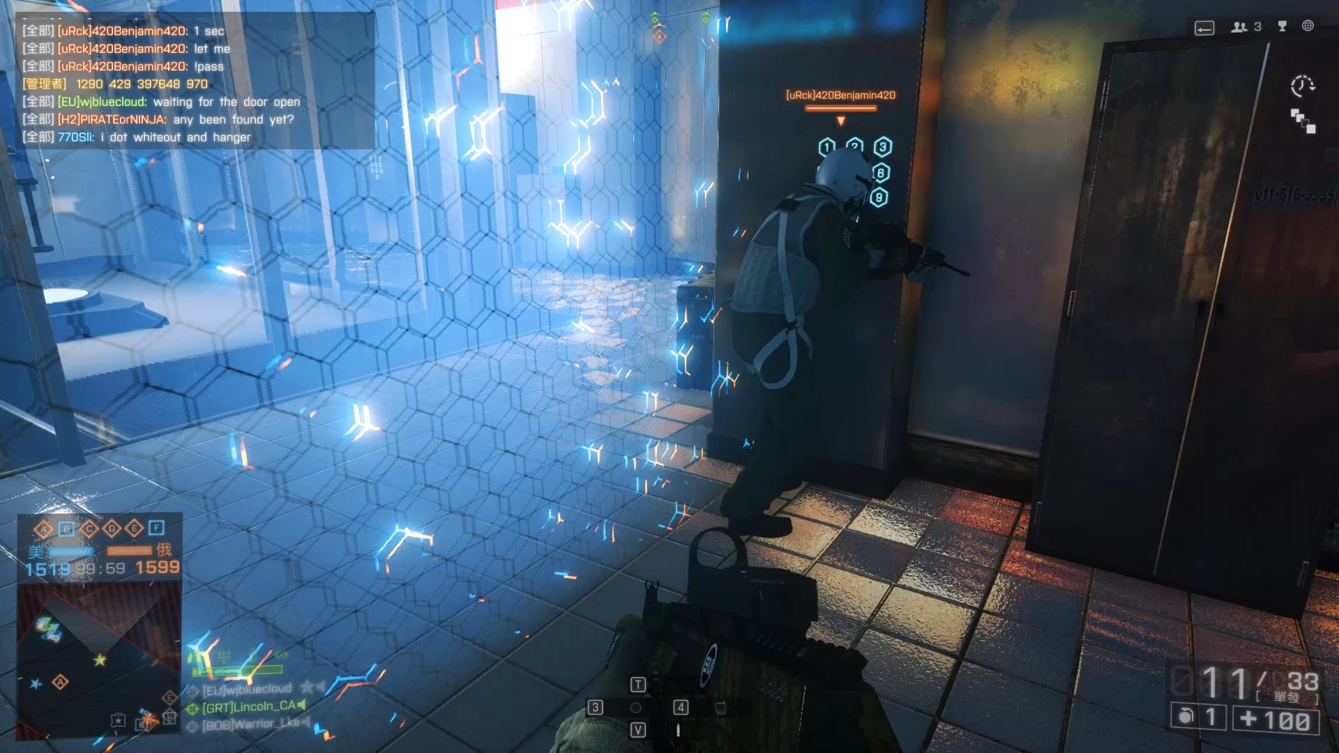 再过了十分钟左右这局结束,装备上狗牌马上冲A点进电梯,刚好来的6人里面有4个不同狗牌,最后5人下达地底,哈哈哈哈哈