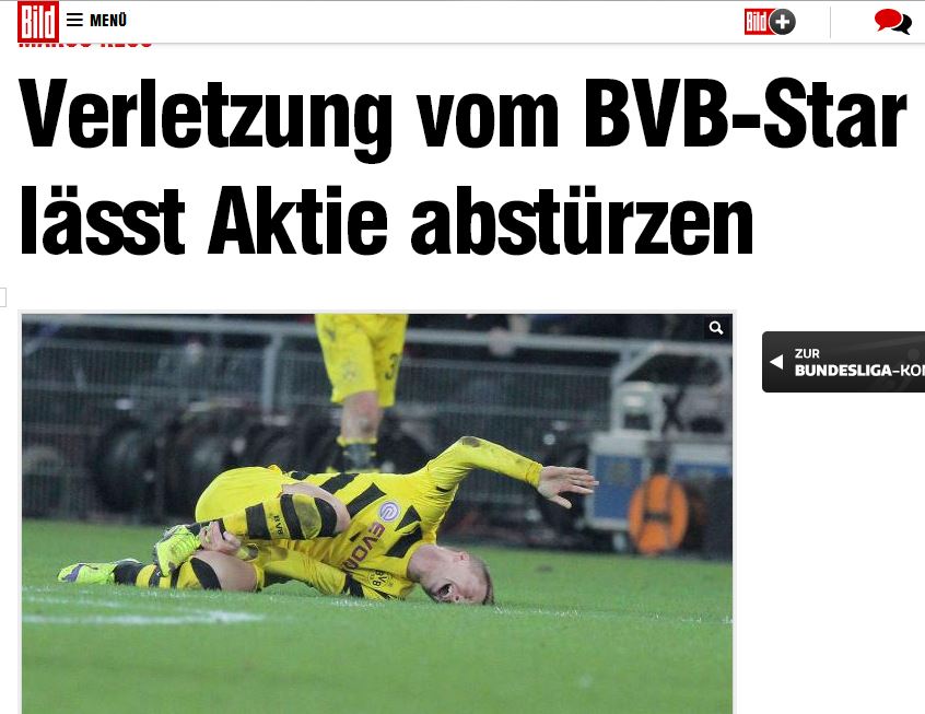 【Bild】罗伊斯受伤,让多特蒙德股票大跌。。。