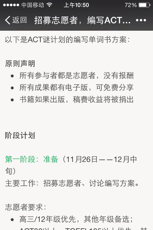 ACT谜 一个微信的公共号啦。。。有点想参加,可以一月到四月有全日制的西语课。。纠结中。。。
