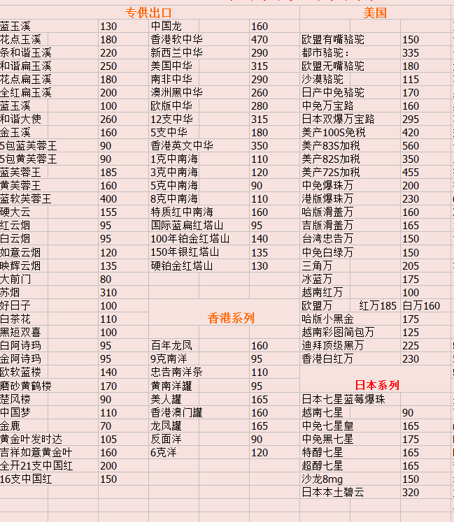 各种国内外香烟,保真。送礼 自抽烟应有尽有。QQ 1623771785 可以通过淘宝交易,货到收款。买不买没关系,欢迎来咨询
