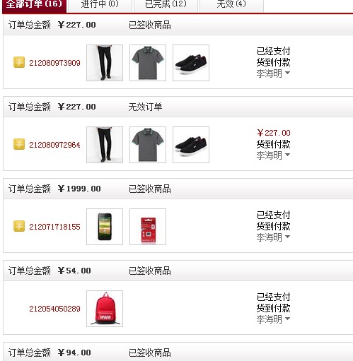 这是买过的凡客,其中有的是帮同学买的