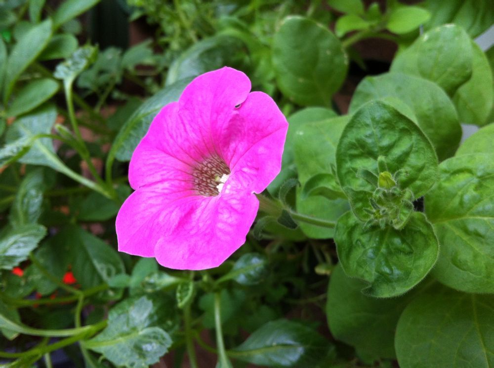 紫色的矮牵牛也是极好看的。刚下雨后水珠把它衬得更加玲珑剔透。
