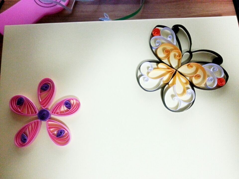 费老劲了[呼~],后边这两朵花,剪出若干等份小纸条,然后圈成花瓣在模板里定型搞成一样大小。。。不知这么做对不对。。。