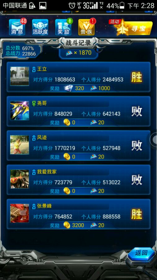 我非贵族,2万战力,但是最高纪录只有150万分的超级手残党,有290多钻,算了一下今天还有30钻可以拿,刚好200一盘,+6盘20钻,刚刚好全部输光有1600分,我对钻石已经没有爱好了。