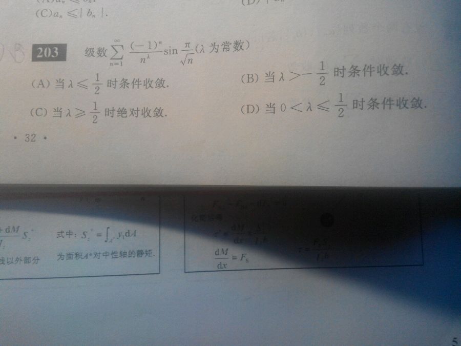 1.我觉得λ∈(-1/2,1/2],该级数都条件收敛。