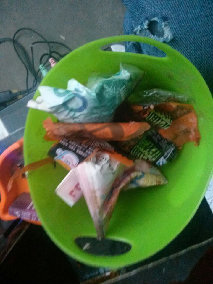 吃饱了 把垃圾桶到了去!!