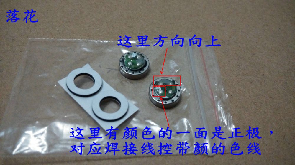 单元件的上面都会有彩色的小点,那一侧就是正极,对应线控带颜色的线