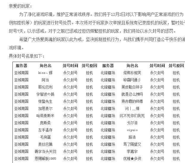 挂机至于永久封么,又不是开挂,这样是在排挤玩家,时间长玩家大量流失,网龙自重。