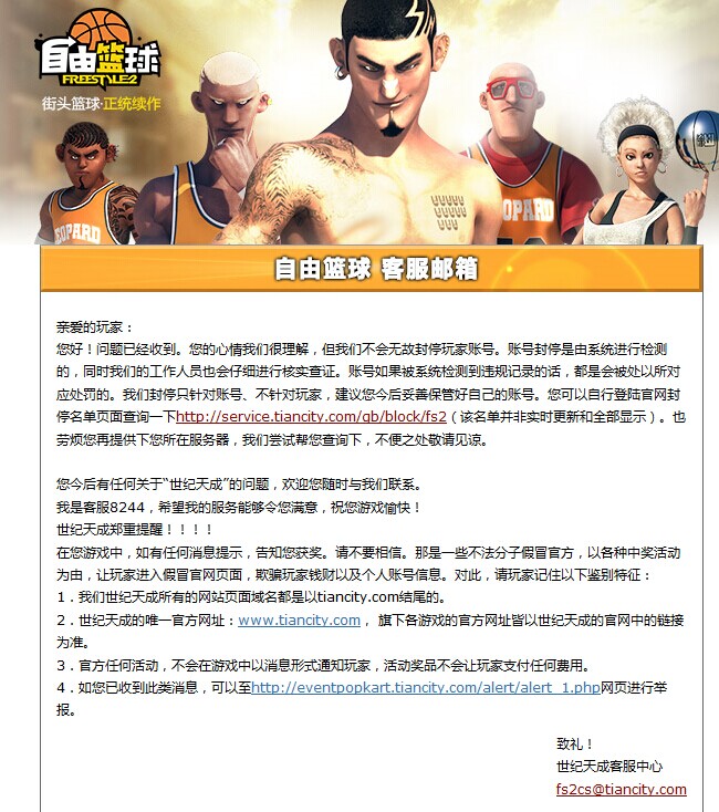 然后在给客服打电话,客服说只能通过邮件形式解封。然后我就在一次发邮件,并且把当天的全部录像都发过去了,过了两天天成也没给我回邮件,当时已经绝望了,后来我去官网查被封账号,居然没我的了,我在上游戏上去了。