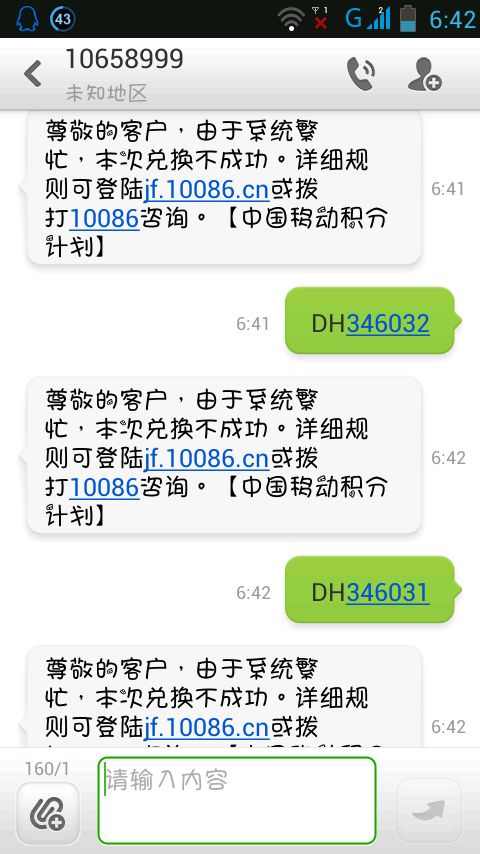 不要谢我,我是雷锋/得意移动公司不会告诉你的事,我通知你:赶快行动吧!谁是移动号,我刚兑换成功了,大家赶紧兑换吧! 发DH346033到10658999,兑换话费 100元 发DH346032到10658999,兑换话费 50元 发DH346031到10658999,兑换话费 30元 先发第一个,提示积分不够再发第二个。年底了,再不兑换积分清零了! 试试真的可以