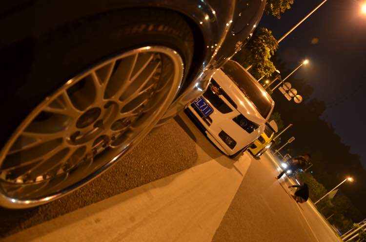 前轮9J ET30 之前上215 40 18昨天刚换成215 35 18.并加了20MM法兰盘且打了-4.5度倾角.后轮10J ET25.之前上225 40 18最天刚换成215 40 18.后轮倾角-6度多