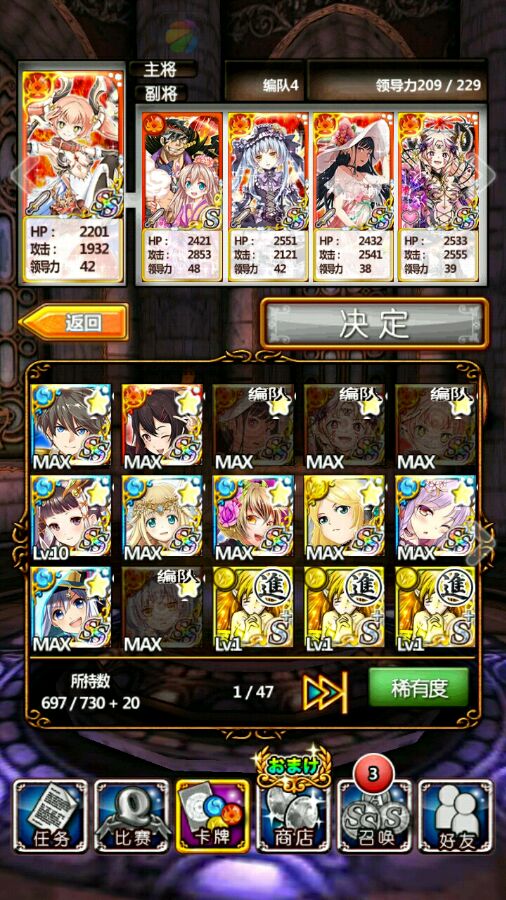 这是我的队伍,感觉没延迟还是可以打得吗?可惜没有第2张鹰女了,不然能试试双减伤能不能过门神...