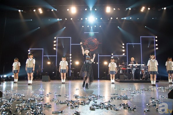 最开始的MC、南条桑说「我预感今天会成为很愉快的一天」、八木沼桑说「大家一起痛快地将气氛炒热吧!」、表达著各自对此次演唱会的热切愿望。粉丝们的回应也毫不示弱、将自己的热情注入到声援当中。「fripSide」和粉丝之间、营造出了非常热烈的氛围、甚至连场外的飕飕凉意都早已被遗忘。