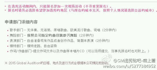 2015年S.M公司将在全球进行选秀
