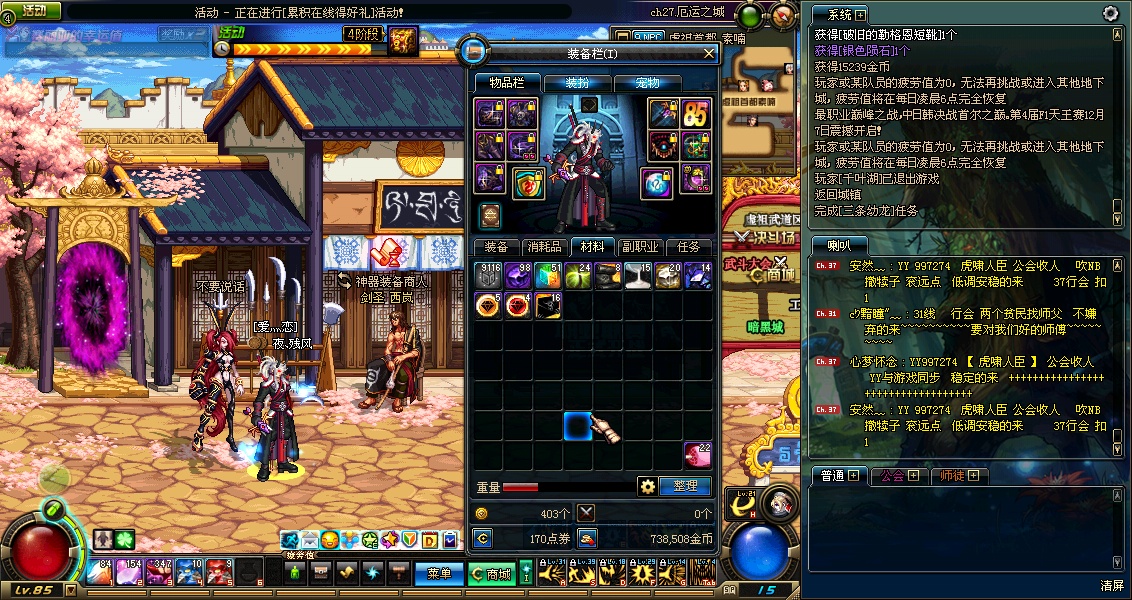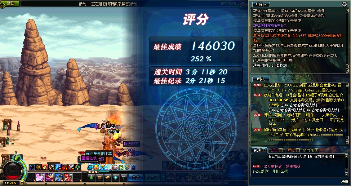 昨日收获:金币738508 无尽24个 迷幻51个 挑战书8个 神秘陨石98个 75粉十字架一个