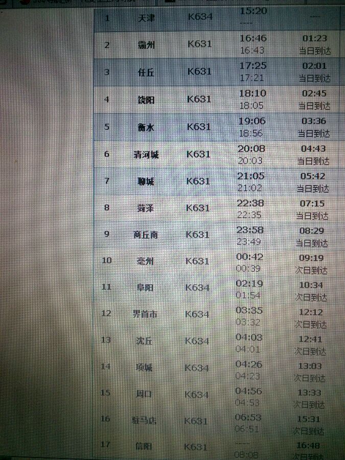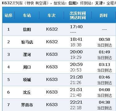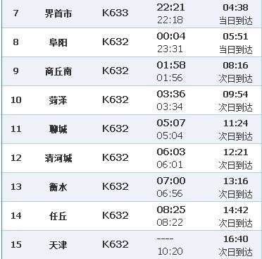 【K632/3 信阳-天津】次列车官方时刻表出炉 一代神车正式落幕