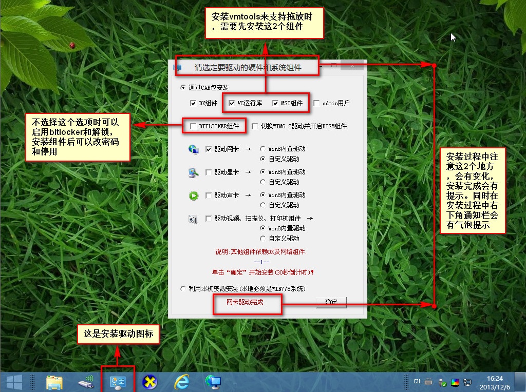 但是在刚进入这个PE系统的时候,无论是轻松备份,还是我们那个分区助手,都是无法打开的。要点下图中,任务栏那个“安装驱动图标”,然后直接点确定过几秒等它安装完就行。