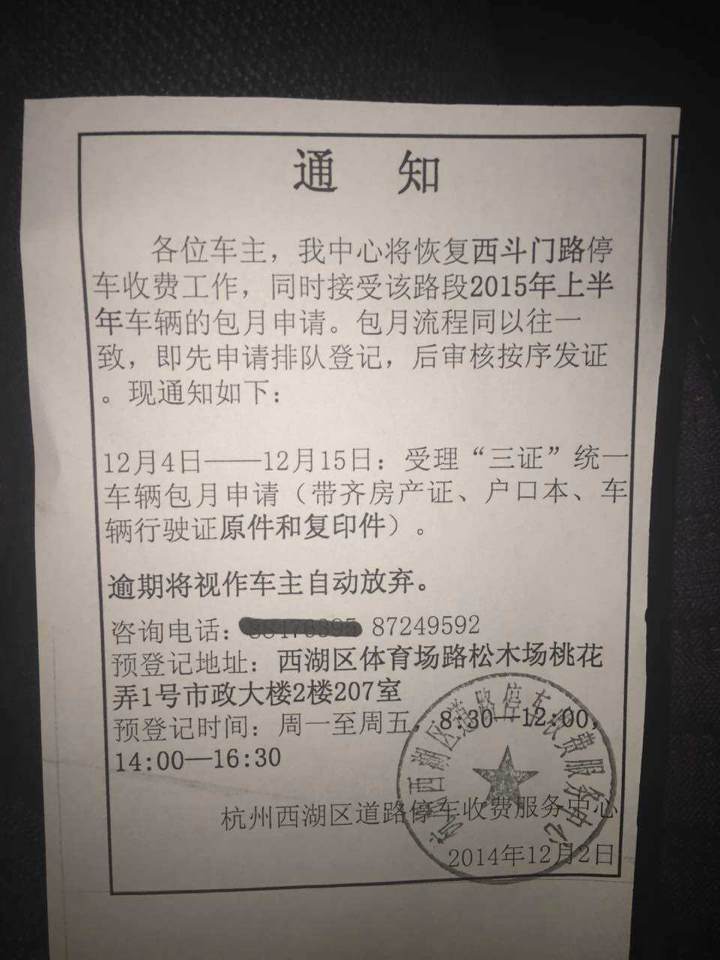 下班走向车,远远看去,心里疙瘩一下,这难道又是一张吗?拿起来一看,顿时心凉了啊,这比罚单更恐怖啊!道路两旁回复停车收费也就算了。还得去预约包月,还要房产证,户口簿什么的,吓尿了,去哪里给你找这些??
