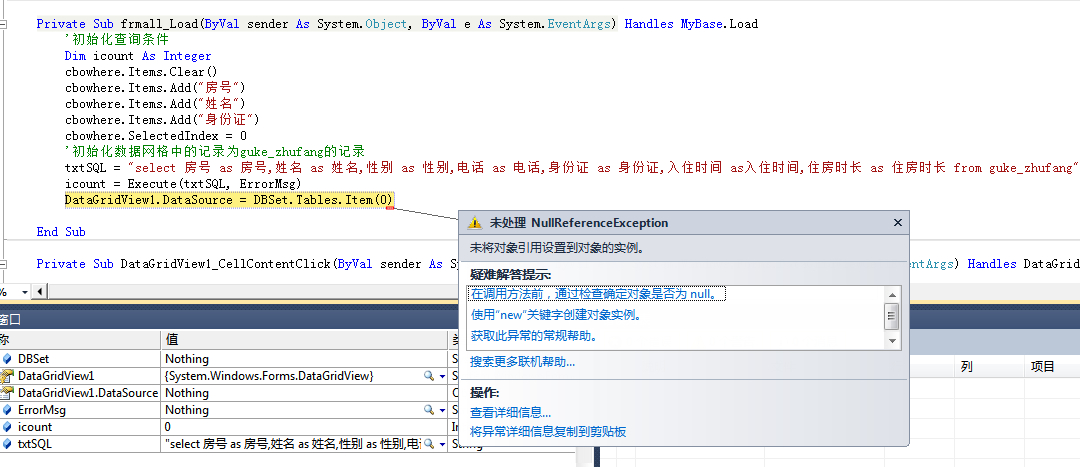 首先你的DataSet是否实例化了