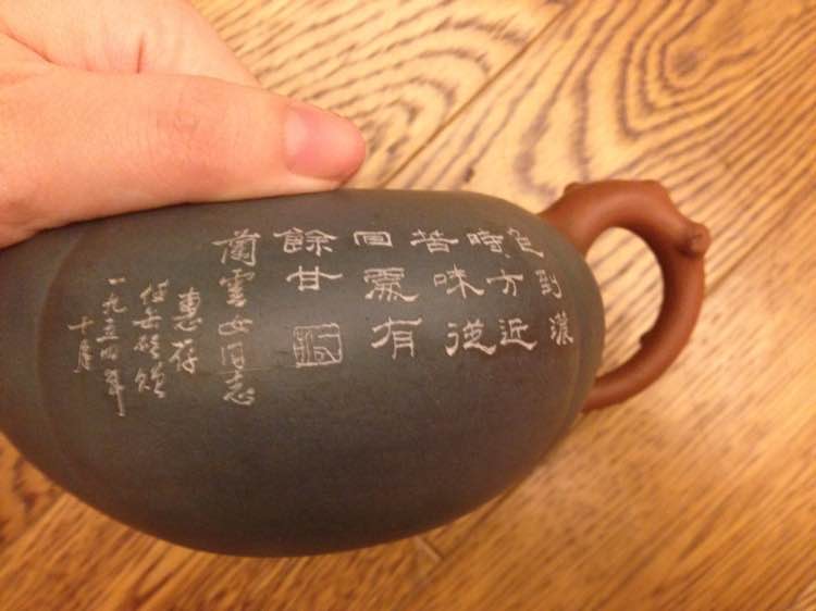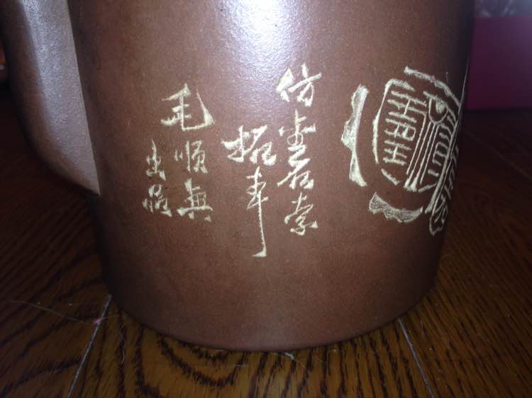 我呢不是紫砂爱好者,也不会看,反正壶上刻了太公名字:屠继绳兄长,还有外婆的名字:兰云女同志。我外公在8年前也去世了,不过我外婆还健在,外婆想把这些东西都卖了,因为她说自女多,分给谁也不合适,索性卖了分钱最公平,但是值多少钱,怎么卖,去哪儿卖,我打听了一下,好像很多很多种说法,所以贴上百度问问大神意见