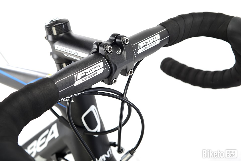 ORBEA在配件搭配方面更多的使用了FSA的优质配件。弯把方面采用经典的 Omega Compact小弯把,经典的舒适把型,无论怎么握都有非常舒适的手感,发力直接,摇车刚性十足。280g的重量表现中规中矩。