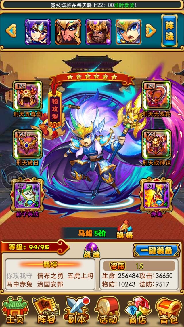 现在刘备马超关羽都橙5了,持续玩,马上开15级阵法,出第八个小伙伴,战力继续上升