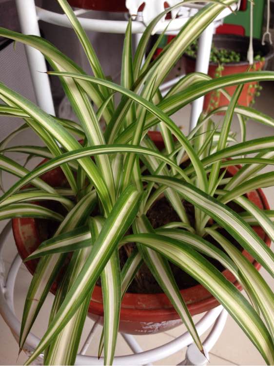 吊兰不能常浇水。干燥好。少追肥。盆要大一些。我那个一帆风顺大盆就不干尖。不这么浇水。