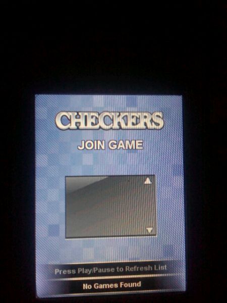 今天偶然的一个机会玩了会zune的游戏(3.3固件才有),都知道有个经典游戏西洋跳棋(checkers),进入游戏有那么几个选项 第二项(multiplayer)试了一下 竟然是联机对战(就是两台zune可以联机玩这个游戏了,有木有很神奇?),下开始发布教程 请勿插楼 求加精