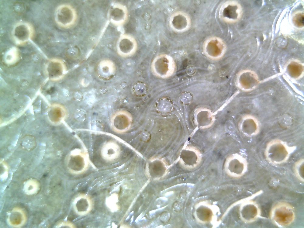 微观下因釉层薄,大的气泡已经破釉面