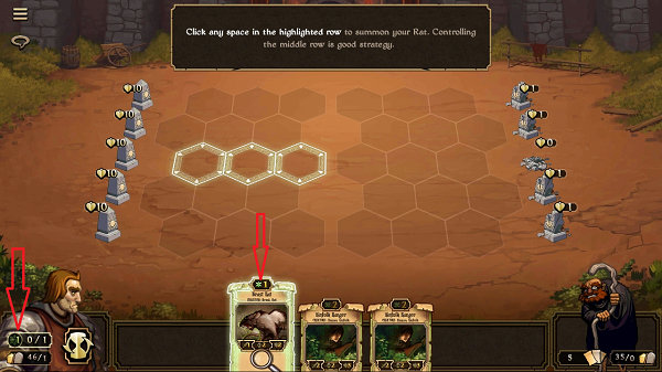 选择其他战斗卡牌规则也都一样,第二张是一个弓箭手,攻击范围会比之前的老鼠大得多。