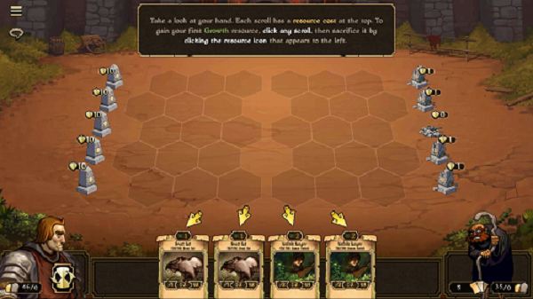 点击tutorial进入新手教程。卷轴scrolls如何操控卡牌:
