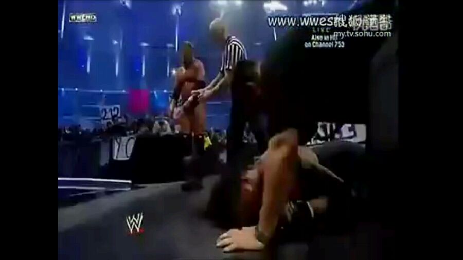 什么跟什么 裁判那里阻止了 hhh根本没有想去搀扶 裁判hbk都在劝hhh别用铁椅打ut
