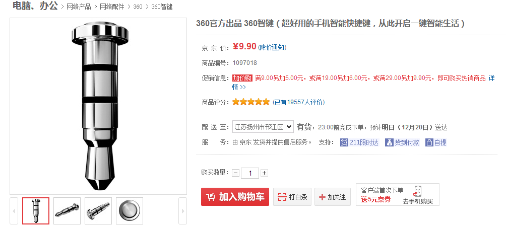 360智键,原本想买回来试试的,但发现只支持安卓机,就一直没用过。这个东西比较牛逼,360开发的,官网也可以免费领一个,但要自己付邮费。更多功能详见官网:http://zhijian.360.cn