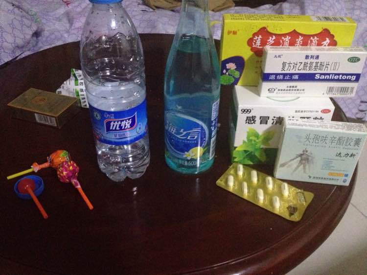 先喝药,在喝海之言在白水漱口,最后吃三个棒棒糖、这两天难受的也不好了、也不干洗澡起