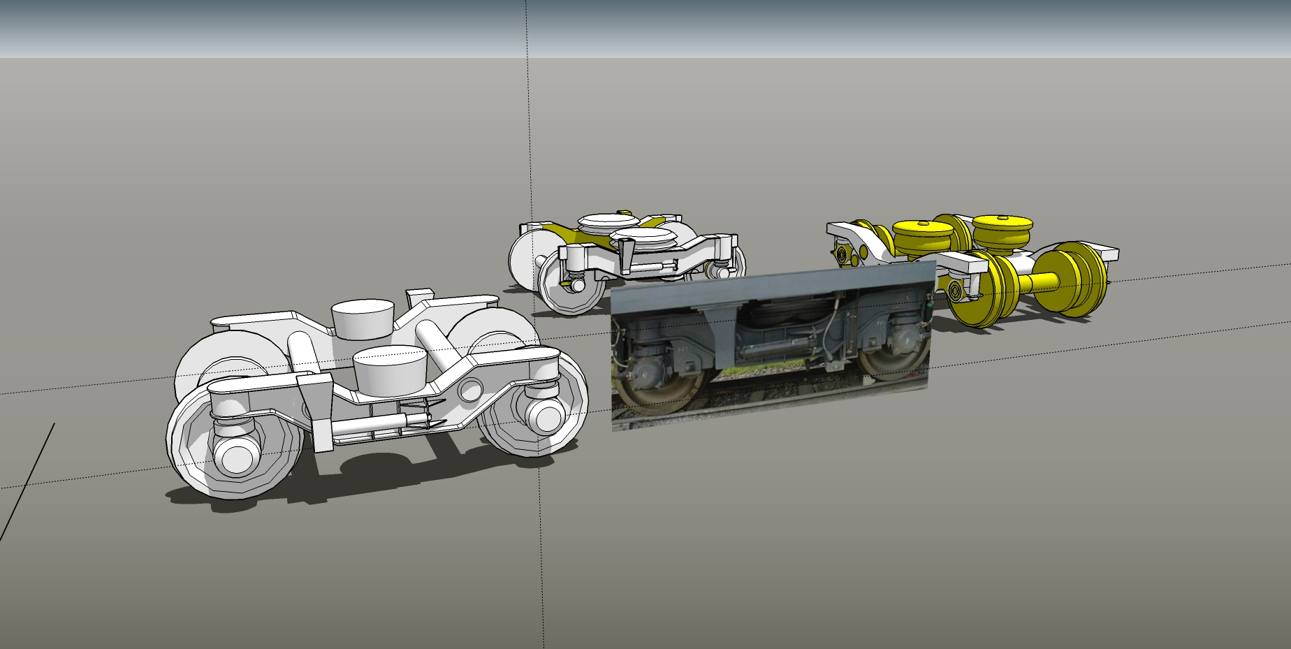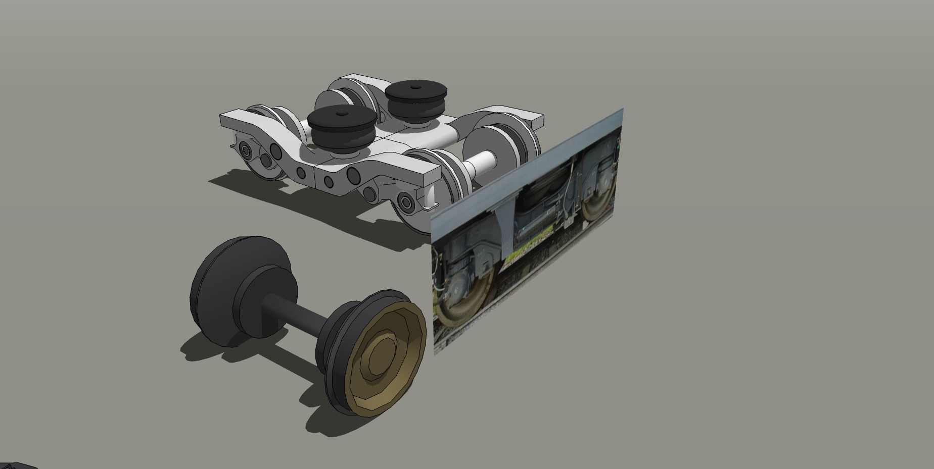 TF首台高质量中国客车箱的制作接近尾声,由于转向架在游戏中必须又轮子与架子分别组成,同时鉴于以前的建模比例与形状与真实有一定差异,特别参考转向架图片与外国列车转向架模型来重新著作。