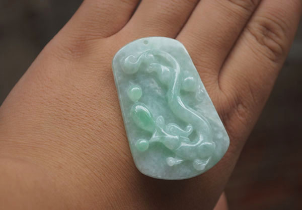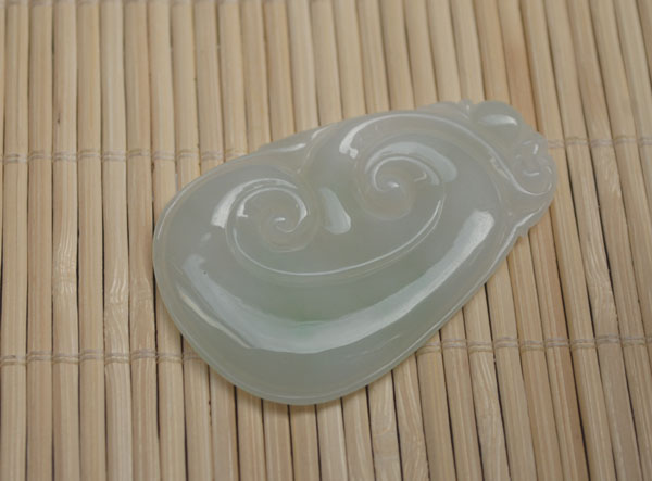 天然A货翡翠,,雕刻荷花和仙鹤寓意:延年益寿,反面有条细纹,可直接佩戴