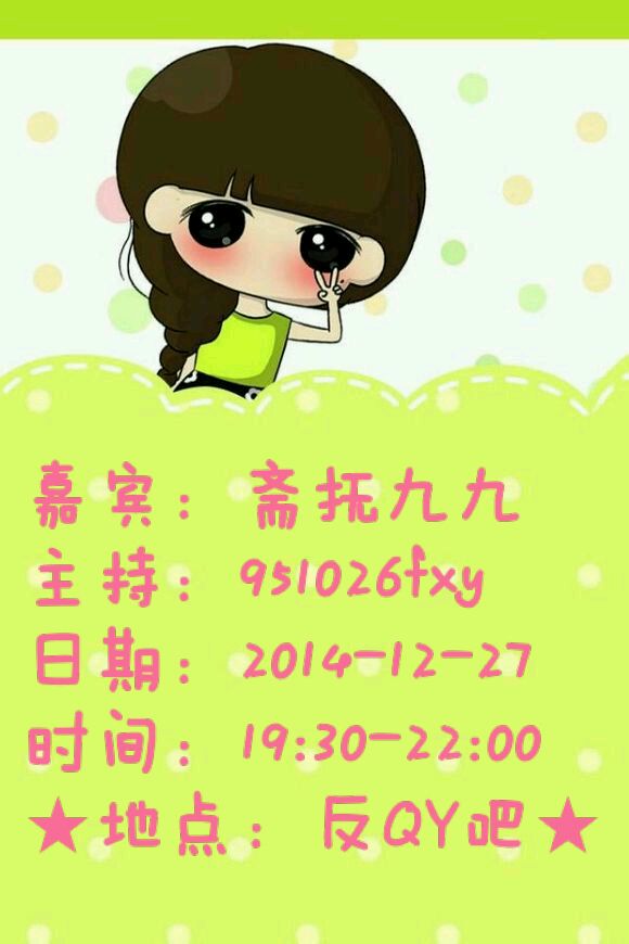 https://tieba.baidu.com/p/3460509902【访谈预告】反qy吧第十七期吧友访谈预告