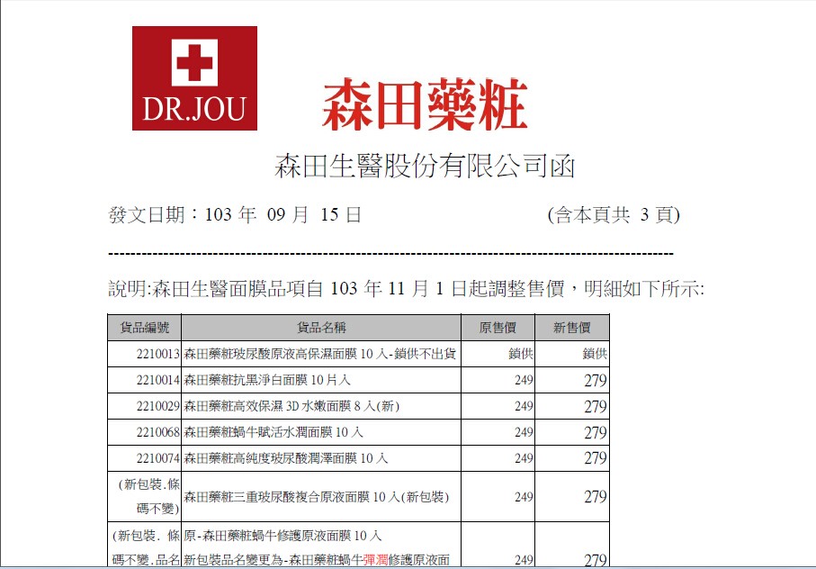 现在大陆的假货已经进入台湾,然后内销,森田公司给客户已经发警告了,一定要在靠谱的地方买。森田的官网:http://www.drjou.com.tw/