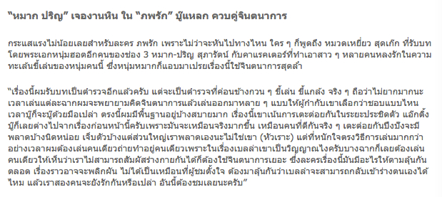 电视剧“爱的世界”舆论热度不减。不管上哪儿,大家都在谈论由三台又一位当红一线小生Mark (Prin Suparat)饰演的自以为是的Yiew警官。这个角色让很多女生着迷,爱上这个男孩的欢快爱玩。小生Mark说这部剧需要有大量的想象。