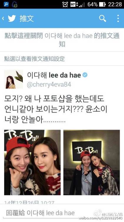 推特翻译如下:为什麼我用了photoshop 看起来也是像姐姐呢?尹素怡 不跟你玩了…… /憨笑