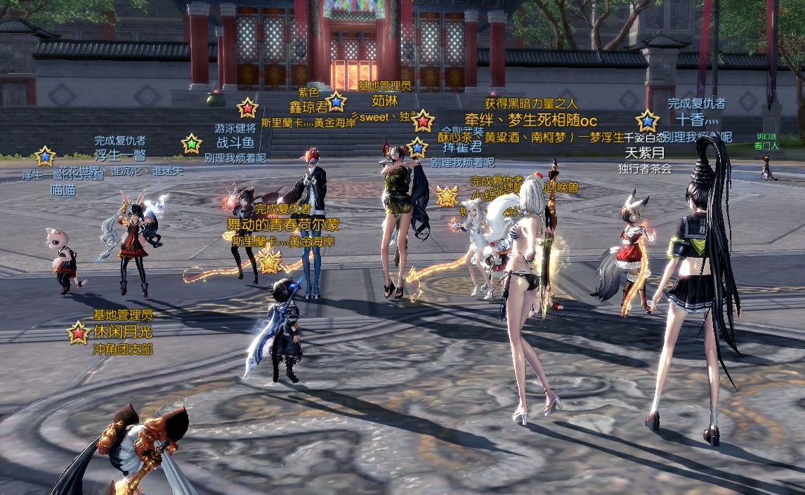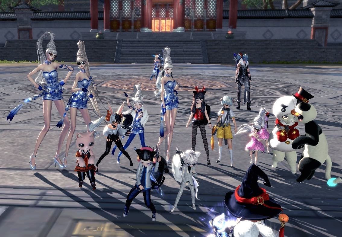 刚刚和基友们打完副本 没事干 就跳起广场舞了 围观的小伙伴越来越多 然后大家就一起愉快的跳舞 拍照了