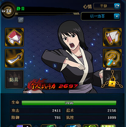 ●我们可以看到伤害出现了很明显的变化,这里我们可以做出两个推测:1.我们之前的猜测依然正确,这个伤害的变化是由于攻击值的提升导致变数常量的提升,此伤害依然为不破防伤害,2.我们之前的猜测错误●那么为了验证我们的推测,我们用一个伤害减免一致,防御值不同的忍者来做测试,如下