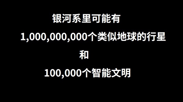 回到咱们[url]http://银河系[/url],运用同样的算法,和对于银河系恒星数量估计的下限(1000亿),我们可以算出来,银河系里可能有10亿个类似地球的行星,和10万个智能文明。