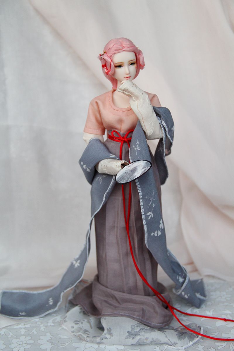 本来应该配个黑发的唐风妹子,梳个甜甜的小高髻。但是没有,所以就让粉发娃上啦~~