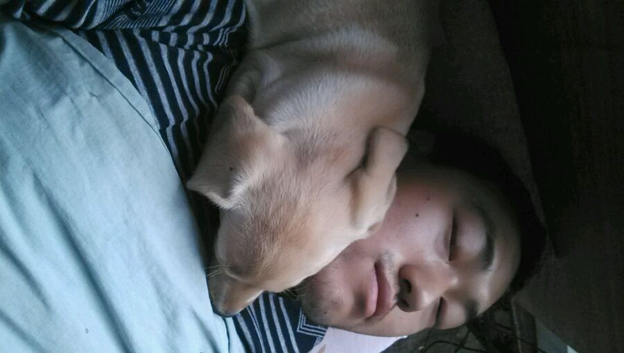 还是你睡觉的照片 那时候只有你睡觉才会安静!把在你睡觉的时候第一次拉你的手 你的收比米同龄的那一窝小狗都要肥都要大!爸最爱你的小手!肉肉的!